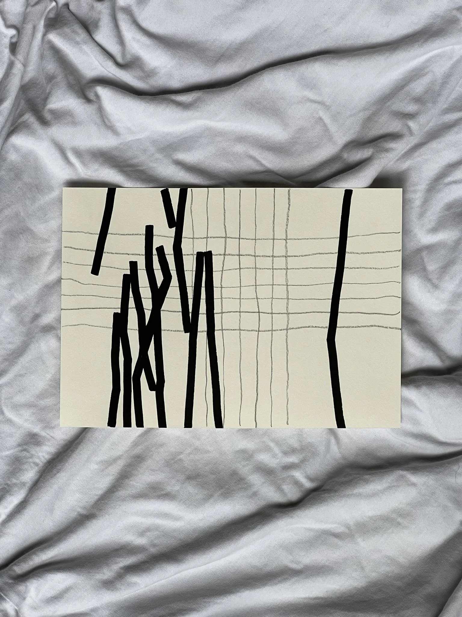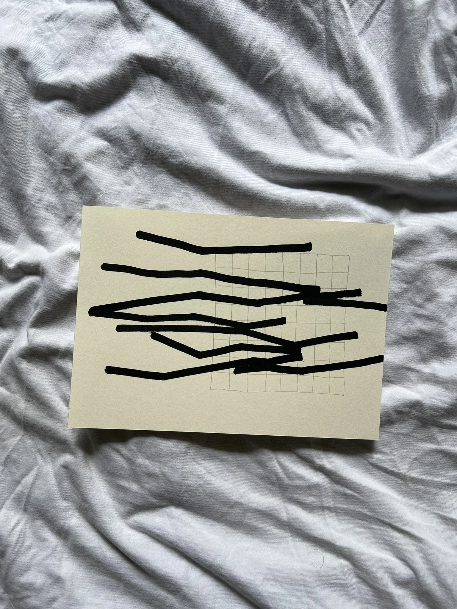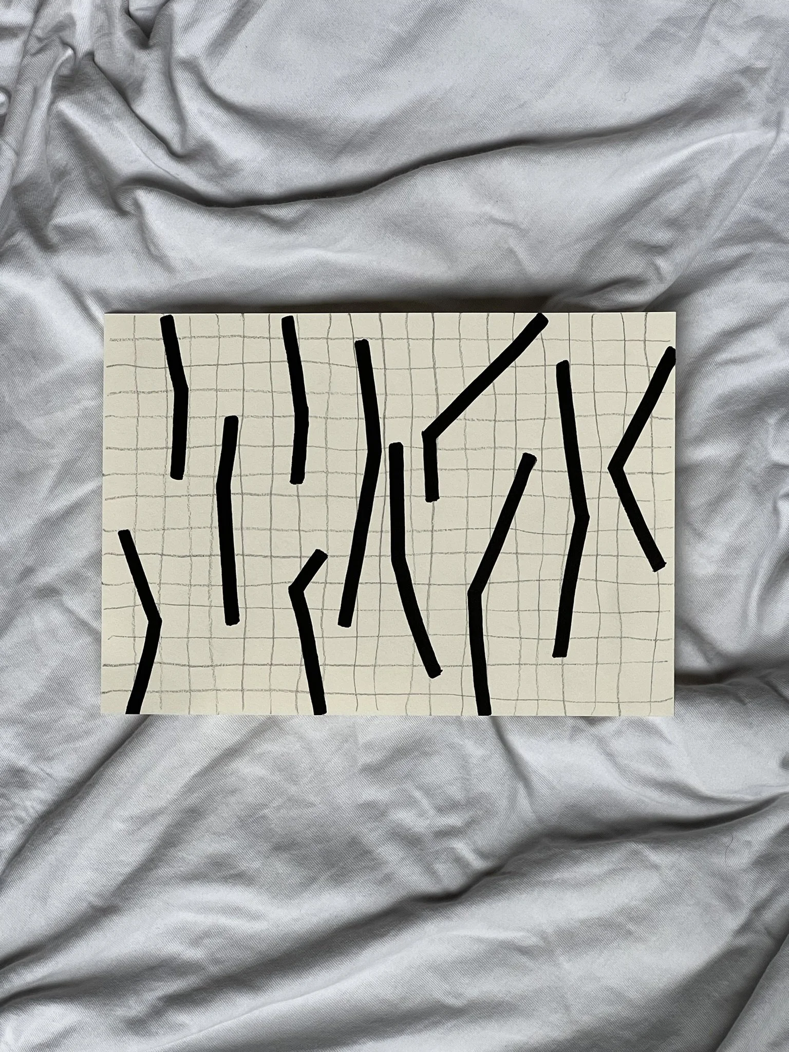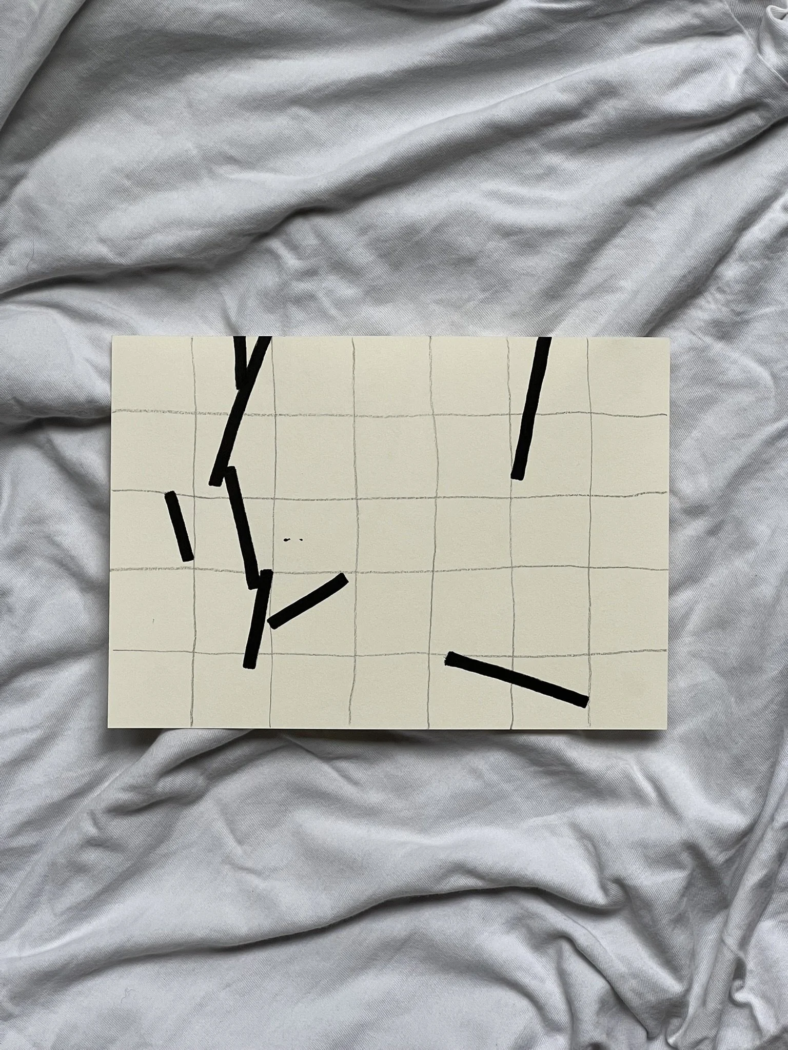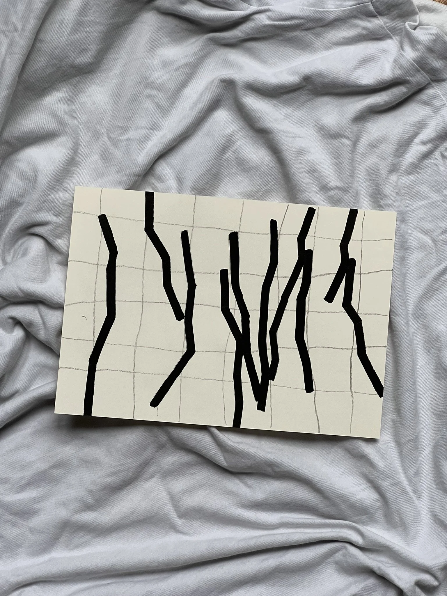 The ongoing series unfolds through the superimposition of two distinct grid systems. The first, drawn in pencil, establishes a structural foundation whose scale, rhythm, and placement are intentionally varied. This controlled instability creates the ground for dialogue rather than uniformity. Onto this base, a second, deconstructed grid is introduced with acrylic markers, fractured and reconfigured through shifts, ruptures, and overlaps.