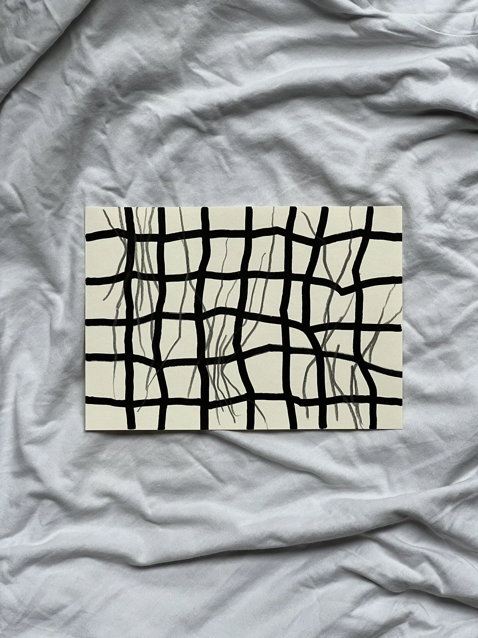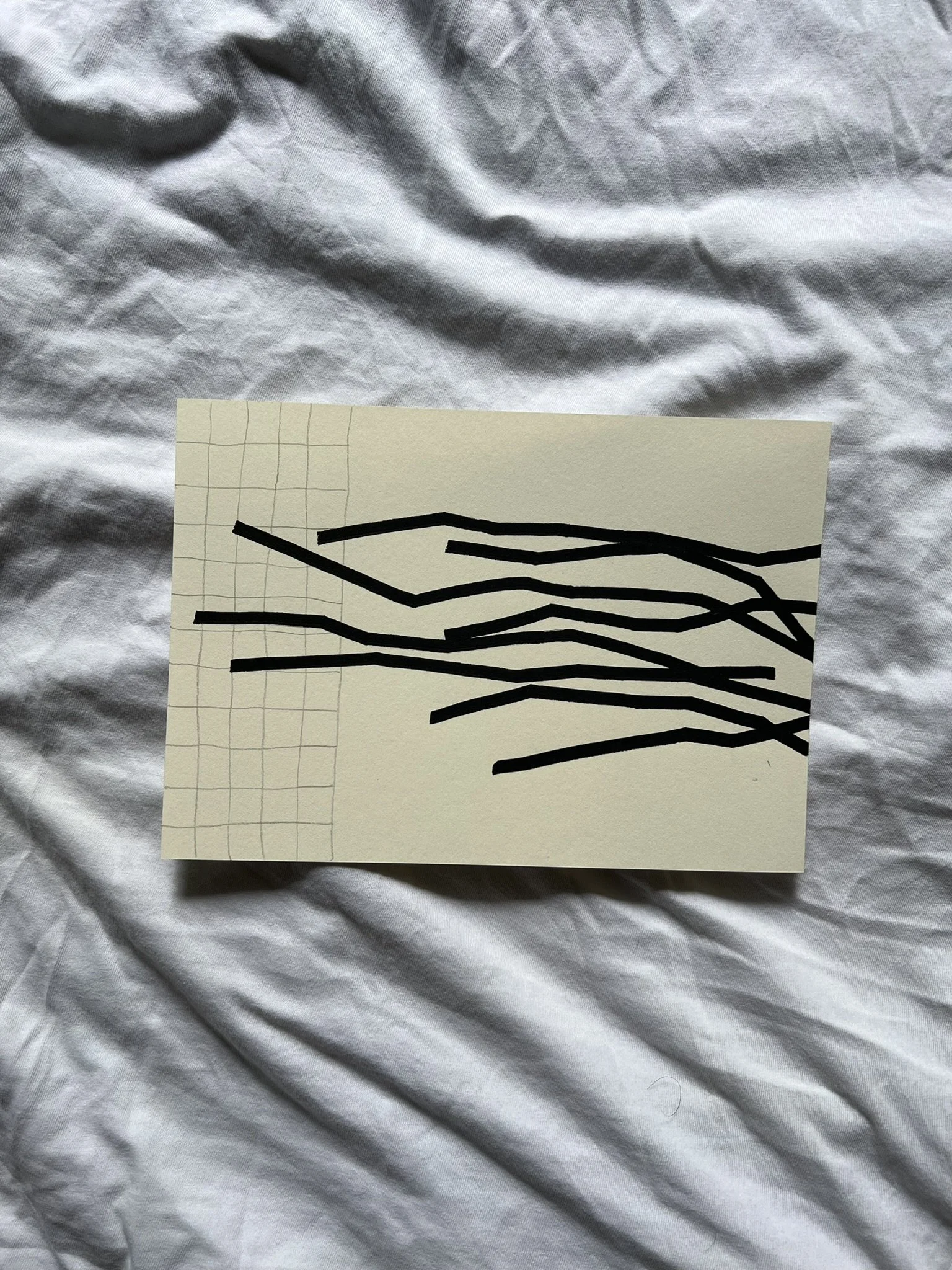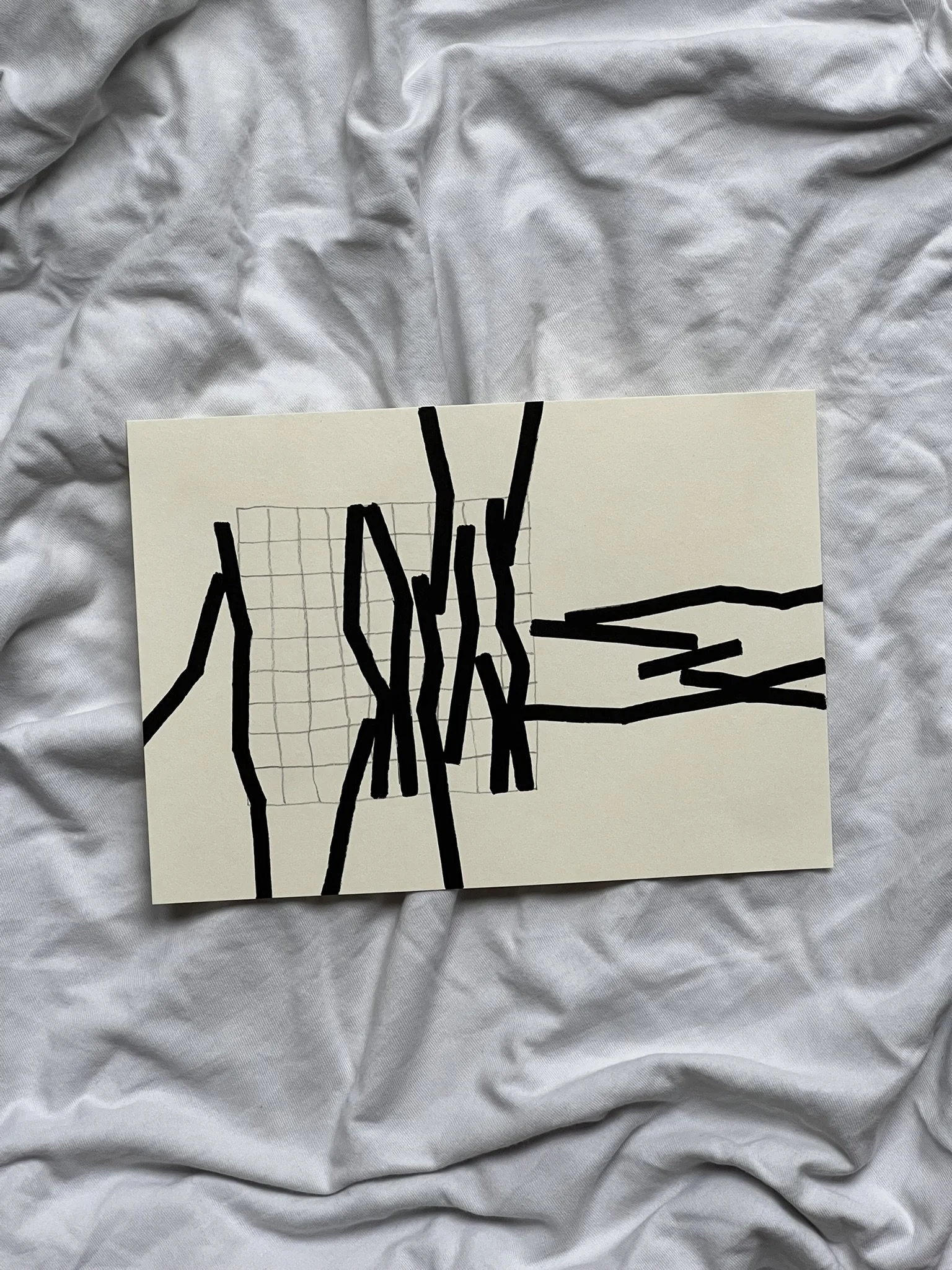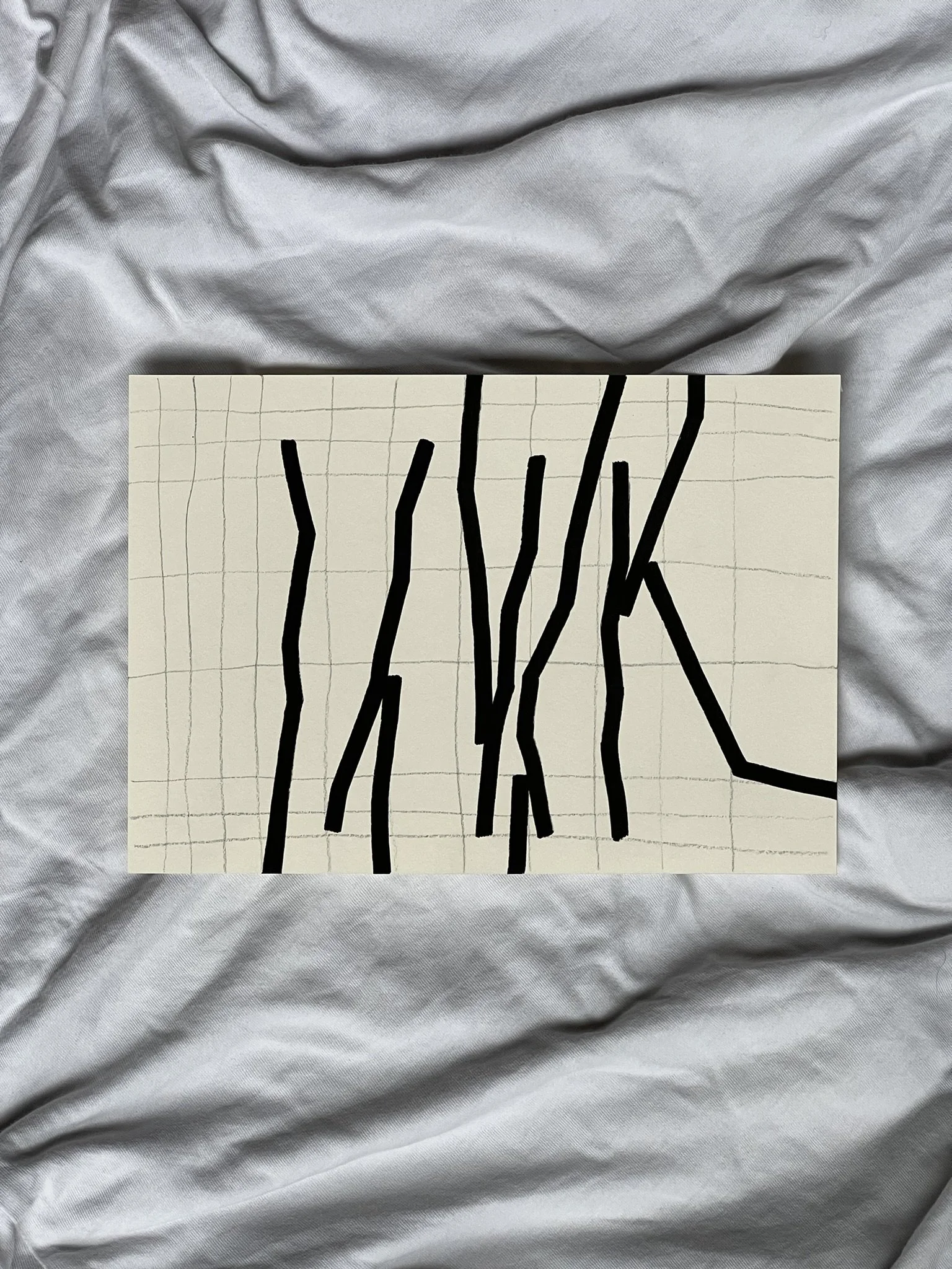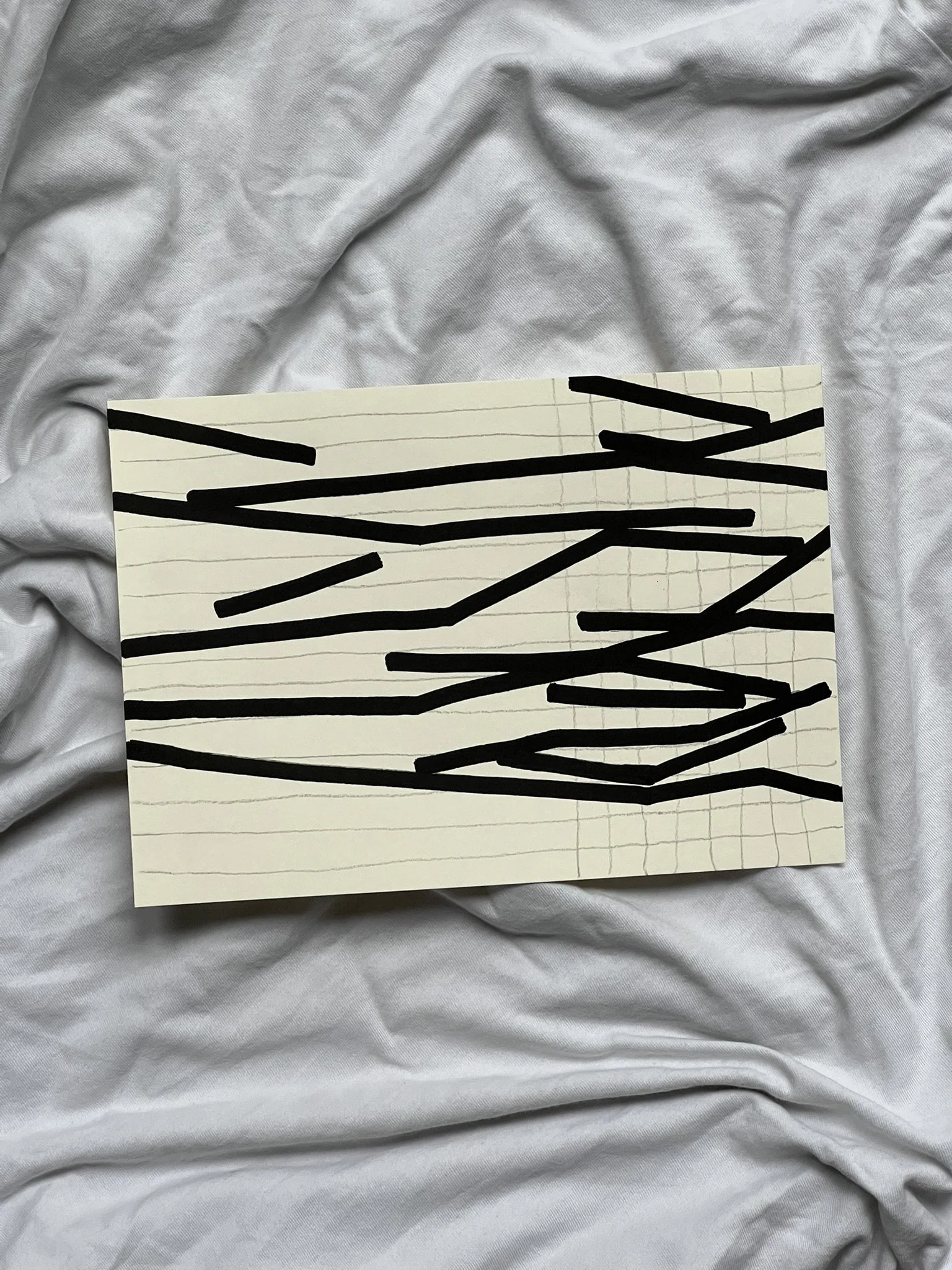 The ongoing series unfolds through the superimposition of two distinct grid systems. The first, drawn in pencil, establishes a structural foundation whose scale, rhythm, and placement are intentionally varied. This controlled instability creates the ground for dialogue rather than uniformity. Onto this base, a second, deconstructed grid is introduced with acrylic markers, fractured and reconfigured through shifts, ruptures, and overlaps.
