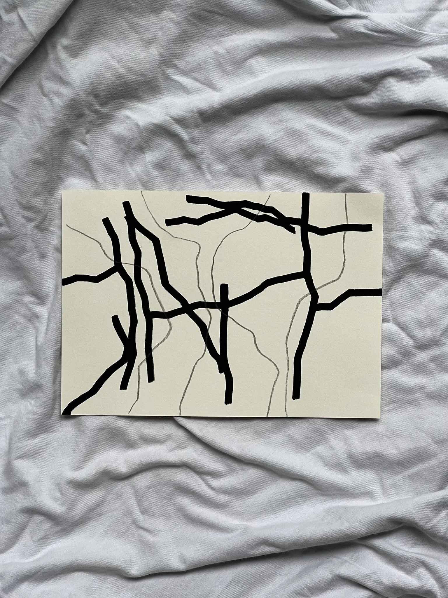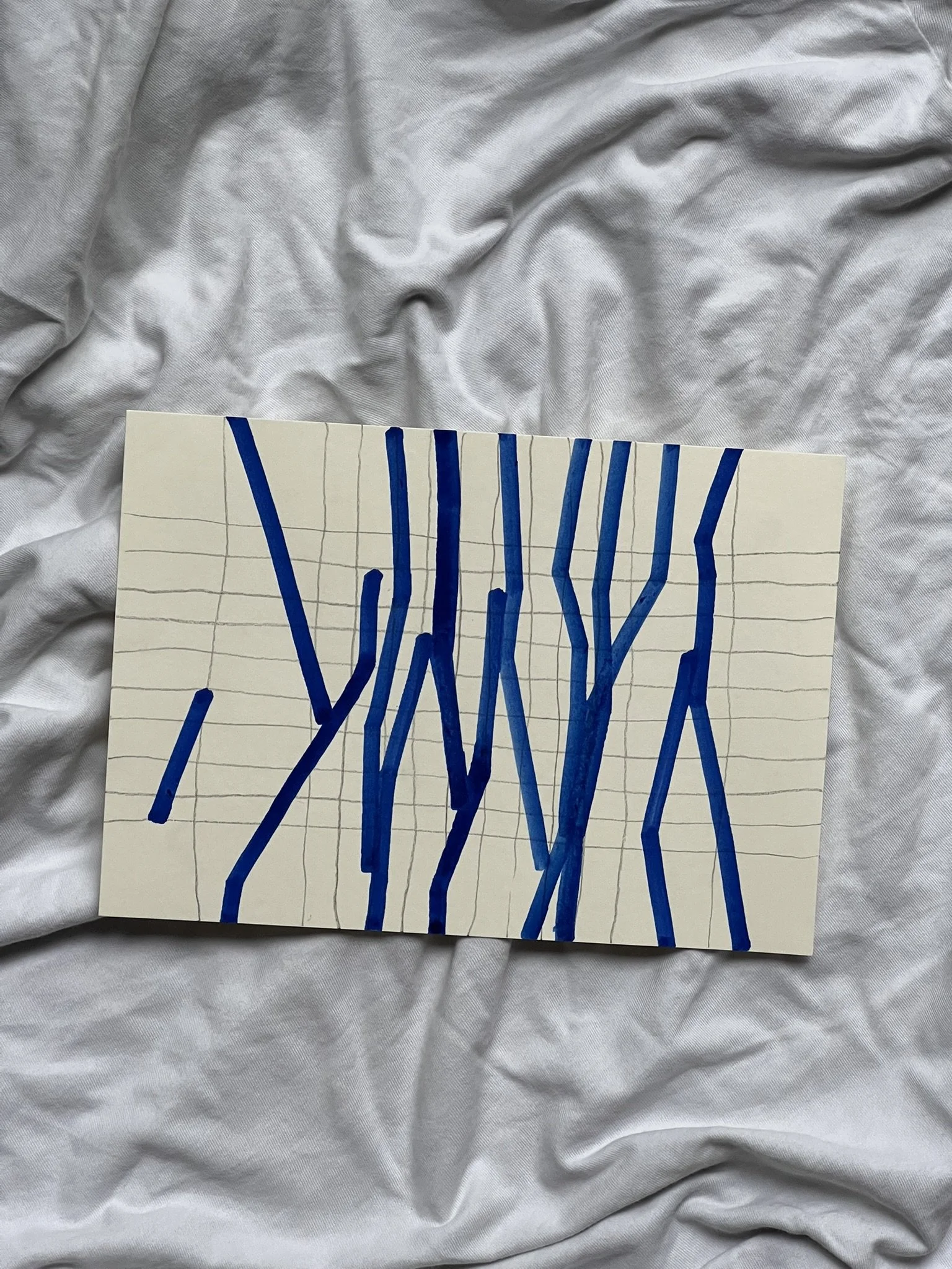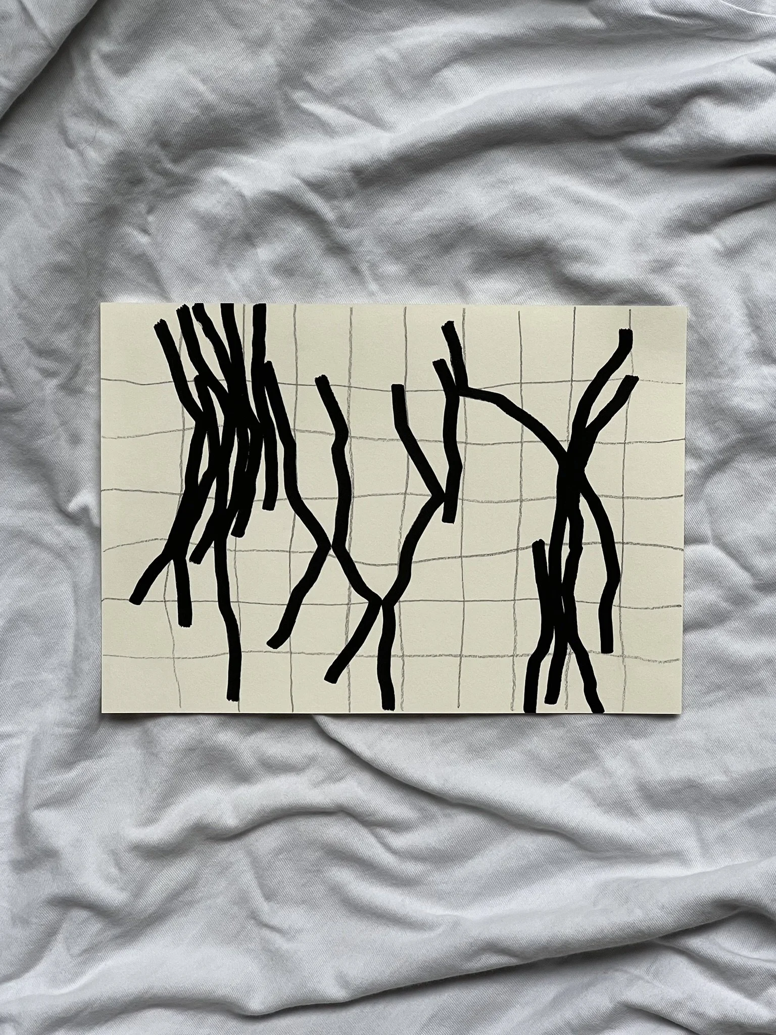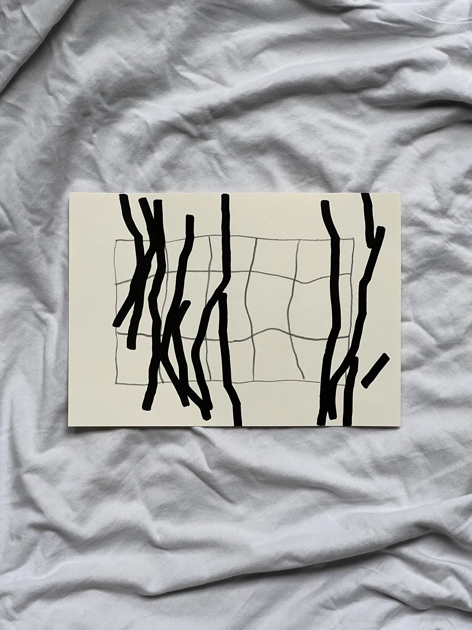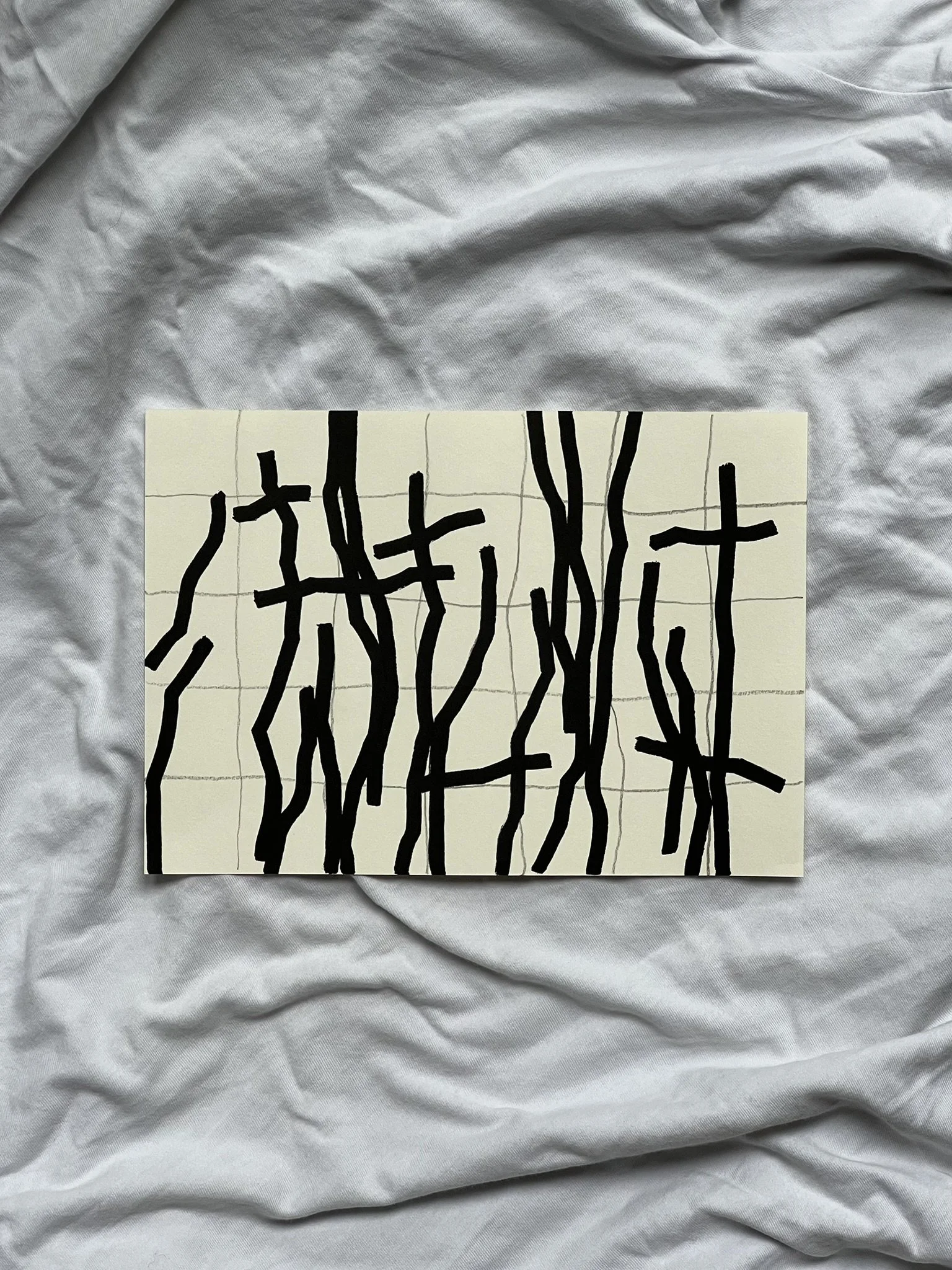 The ongoing series unfolds through the superimposition of two distinct grid systems. The first, drawn in pencil, establishes a structural foundation whose scale, rhythm, and placement are intentionally varied. This controlled instability creates the ground for dialogue rather than uniformity. Onto this base, a second, deconstructed grid is introduced with acrylic markers, fractured and reconfigured through shifts, ruptures, and overlaps.